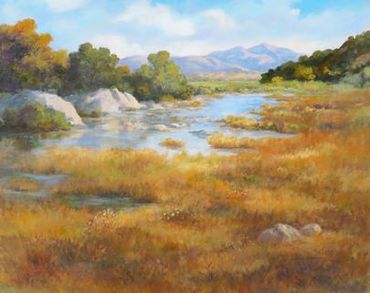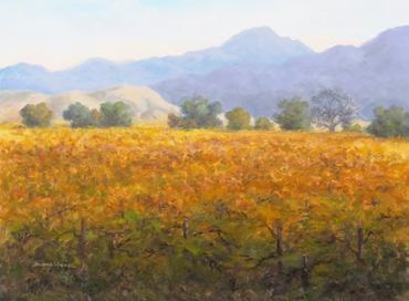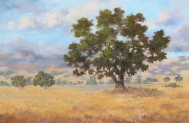 Nature provides Norma’s favorite subjects close to where she lives–the beautiful East Bay hills of Northern California. The lush golden grass, oaks and eucalyptus, ranches and vineyards, and the shadows of Mt. Diablo give her inspiration for years to come. She finds it exciting to be able to share her love for the area with the viewer of her paintings. Raised in the flat San Joaquin Valley, a move to the Bay Area almost 50 years ago changed her outlook on painting completely.